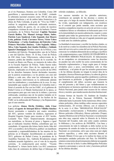 y uno del Ejército; Ilesos: 18. El hoy, Crnel de Policía y de comprometernos a que JAMÁS OLVIDAREMOS A