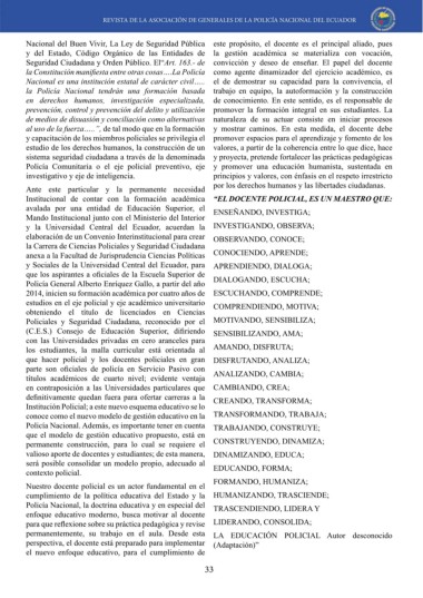 Nacional del Buen Vivir, La Ley de Seguridad Pública este propósito, el docente es el principal aliado, pues